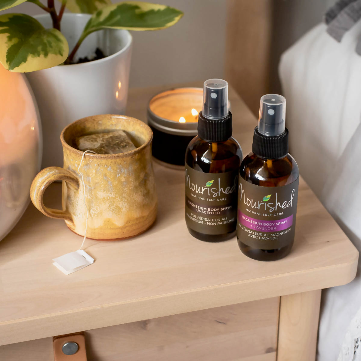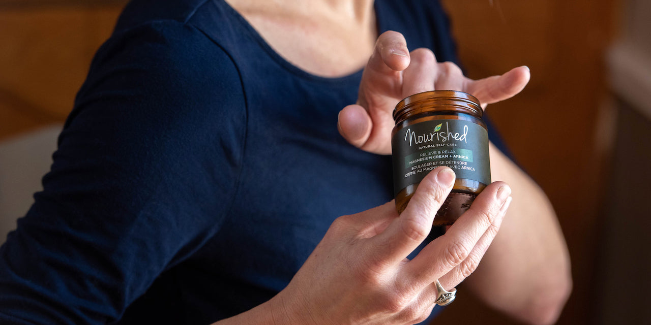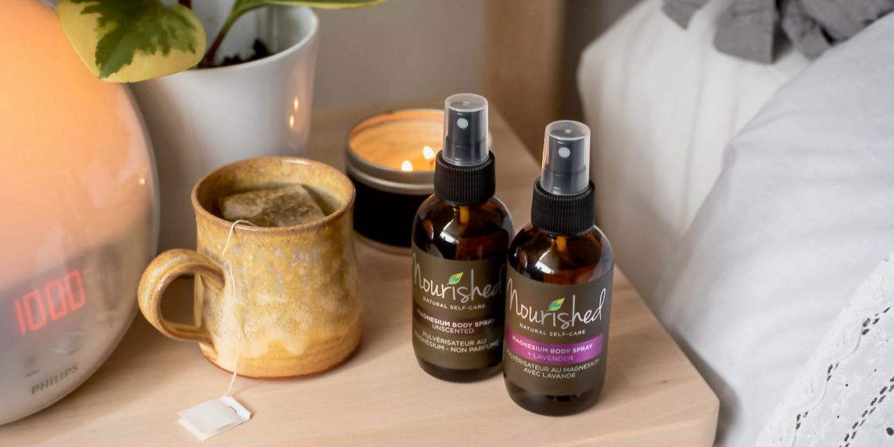 Nourished Magnesium products are made with skin moisturizing ingredients and Magnesium Chloride. Made in Canada.